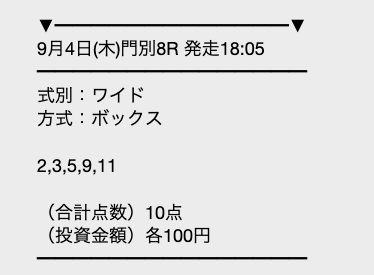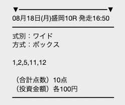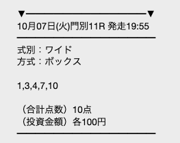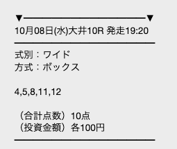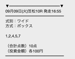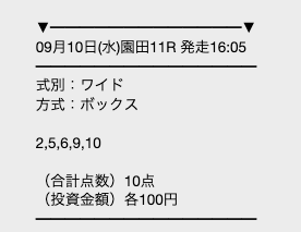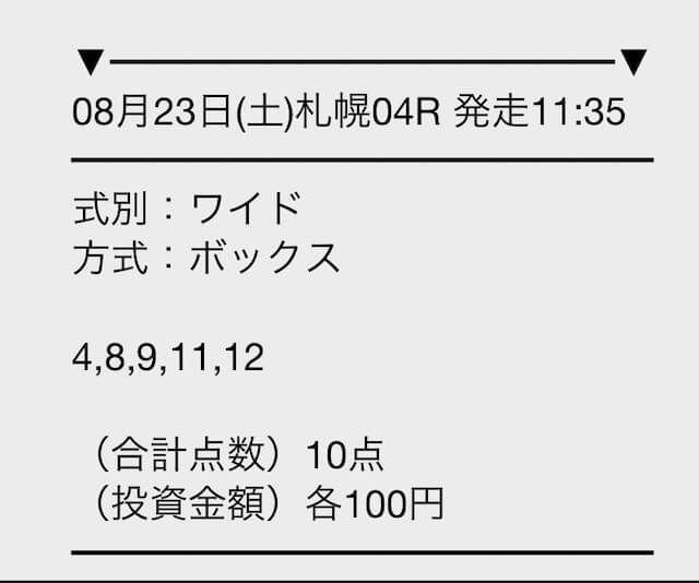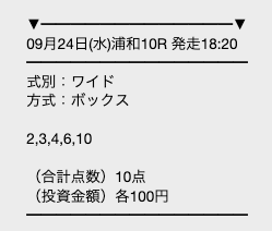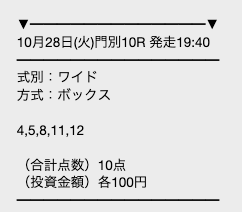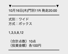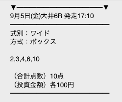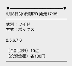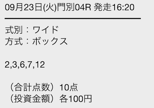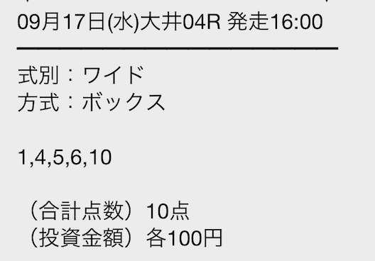 ただ、参加してみないことには検証できないので指示通りに馬券を購入していきます。