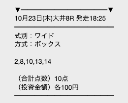 目安の軍資金が貯まったら、ニジュウマルの無料予想に移行してください。
