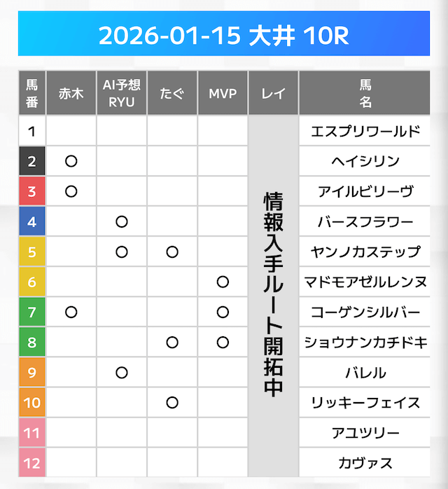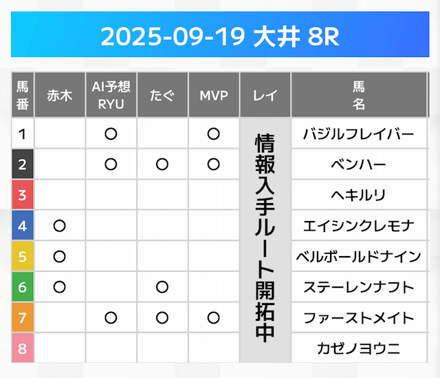 「◯」が2つ以上付いている馬をボックス買いすることも考えましたが・・・