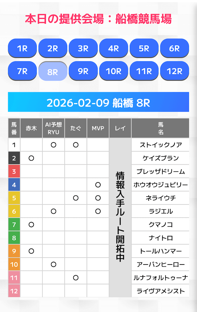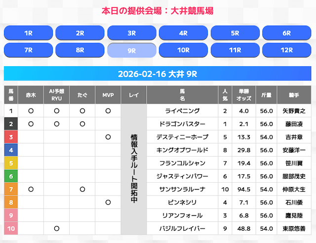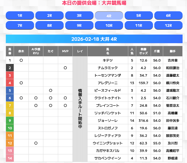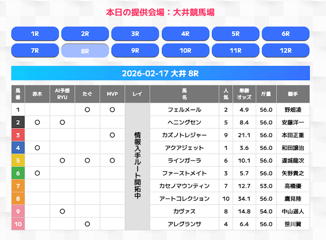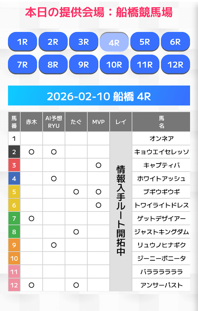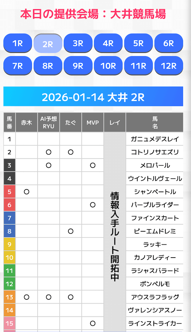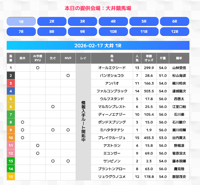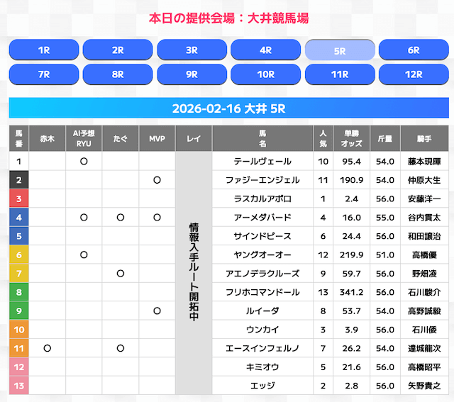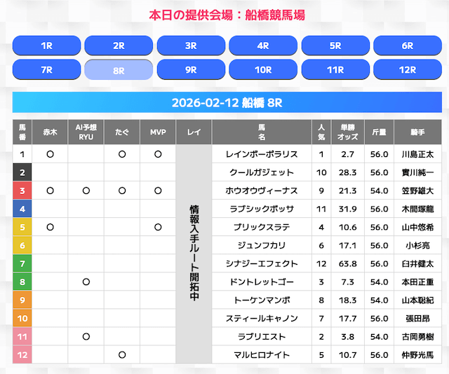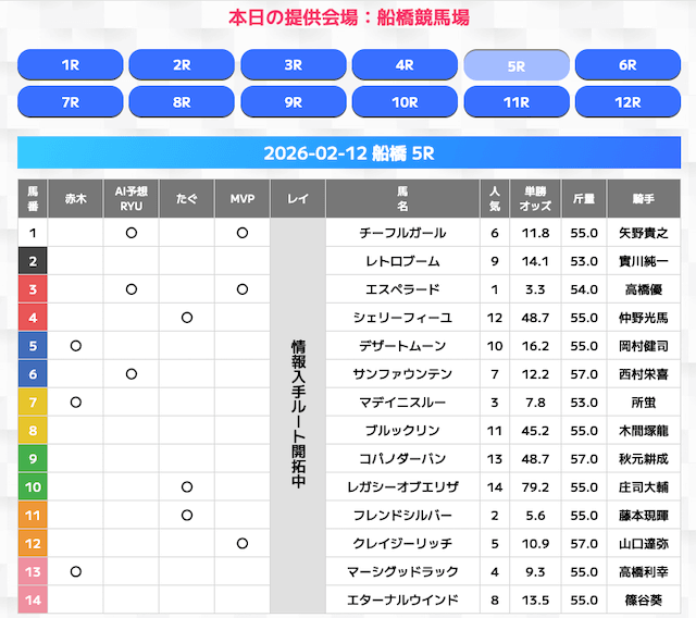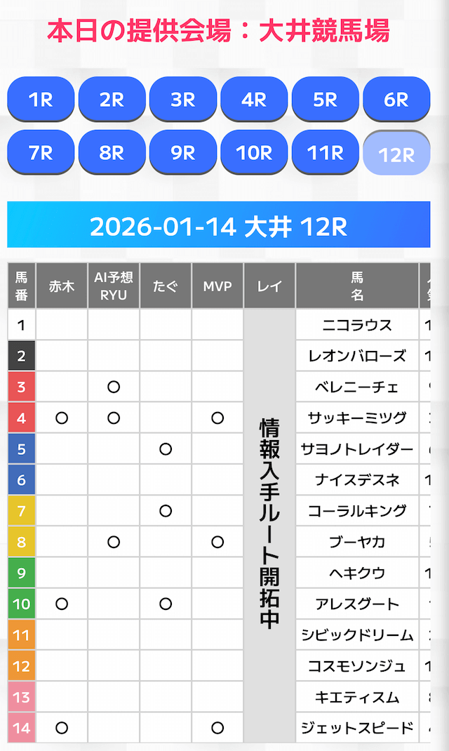 無料情報はひと会場すべて見れますよ。その精度も素晴らしいので有料情報となると桁違いです。数少ないホンモノのサイトです。