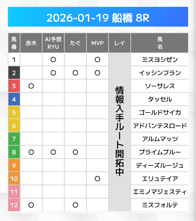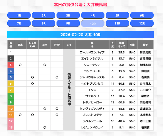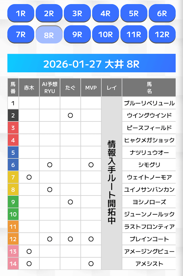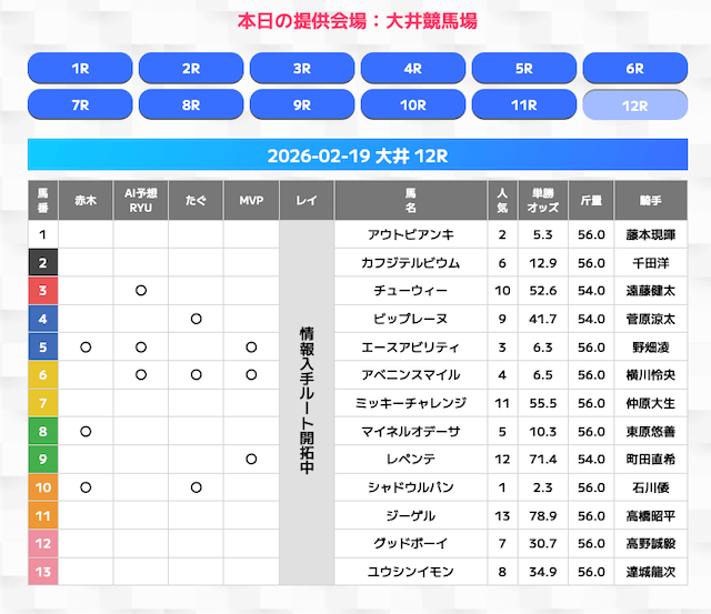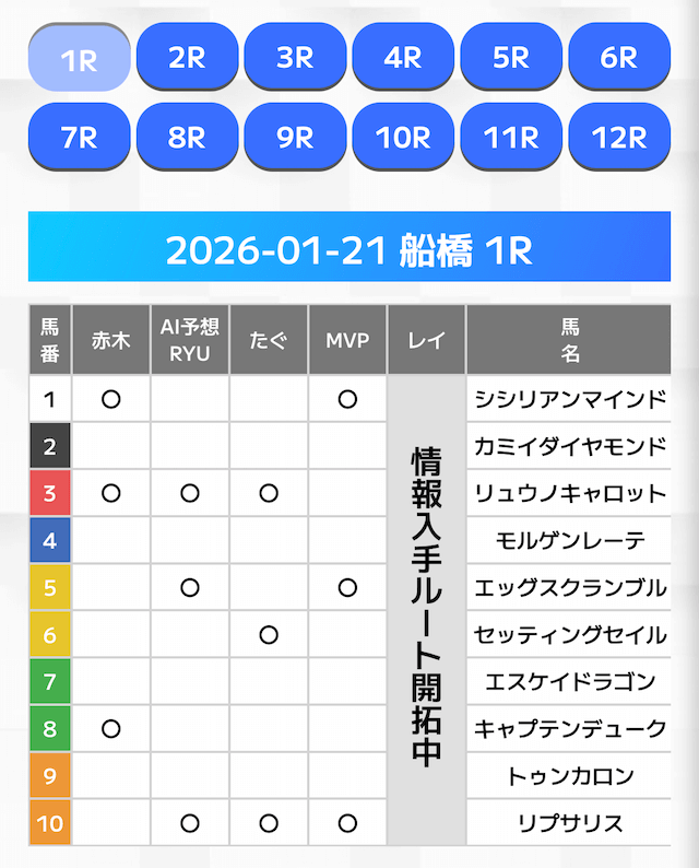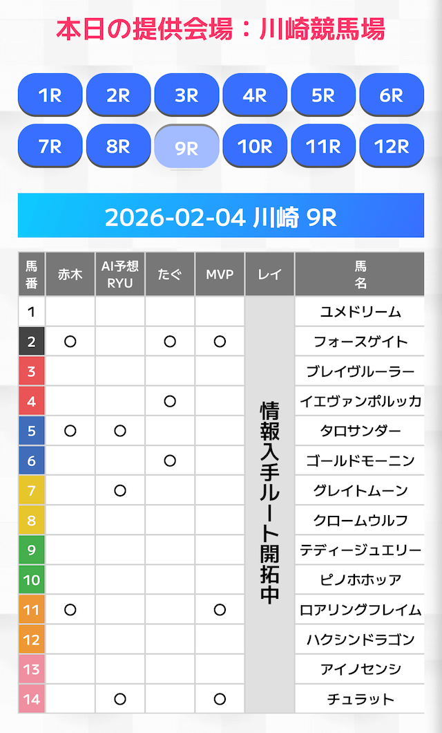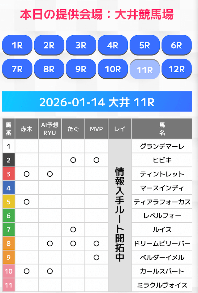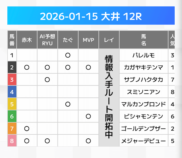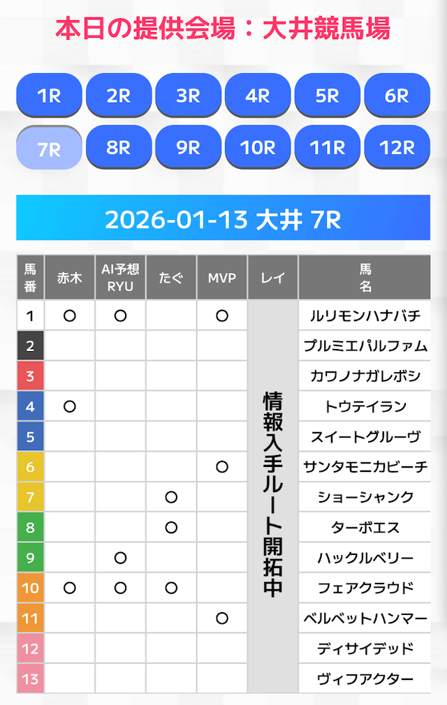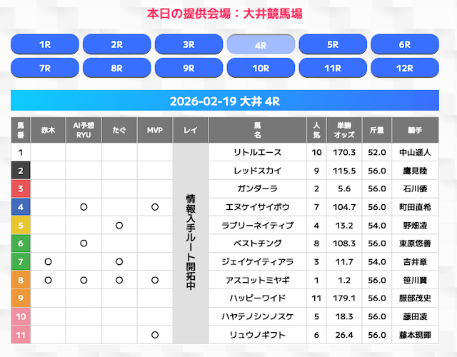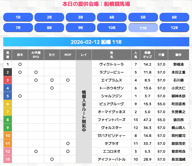 無料情報はひと会場すべて見れますよ。その精度も素晴らしいので有料情報となると桁違いです。数少ないホンモノのサイトです。