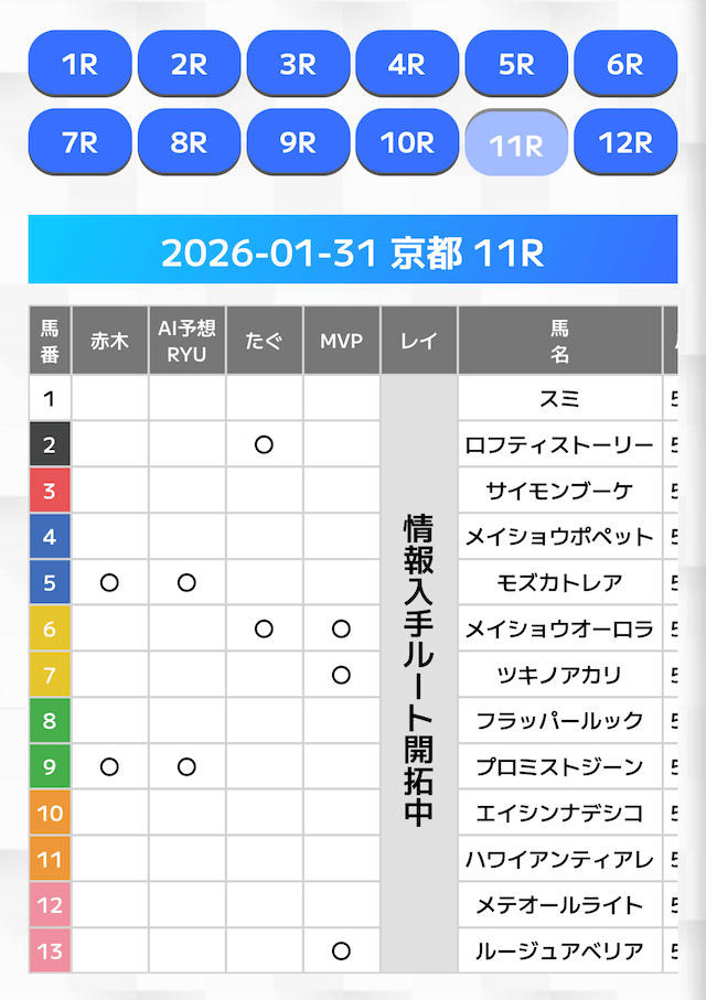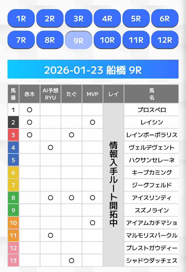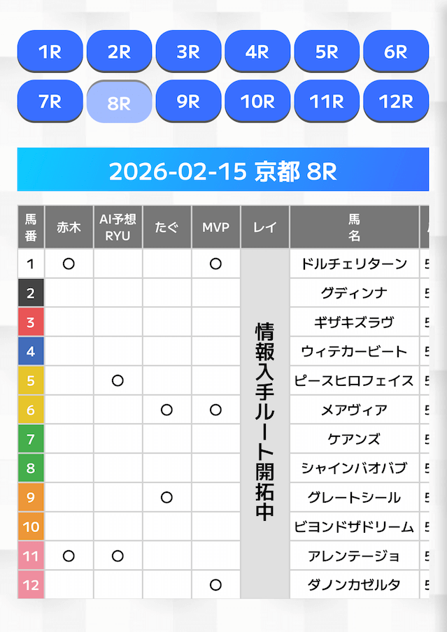 - 好きなレースを選んで予想を閲覧