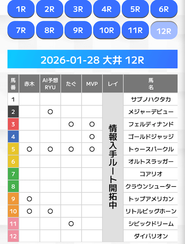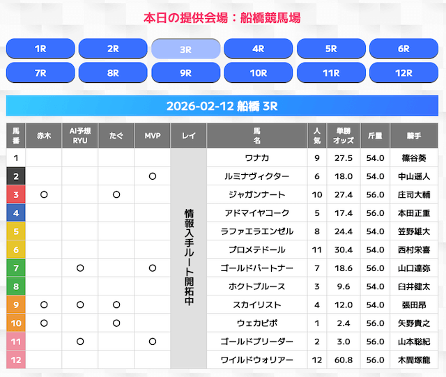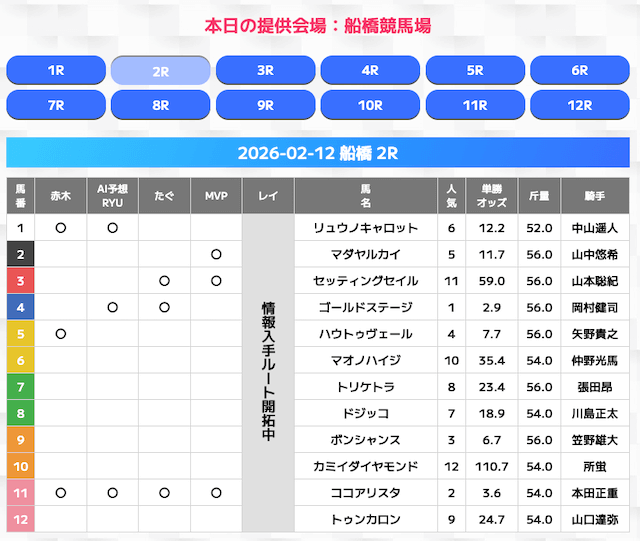 - 対象レース:毎日各会場の1R〜12R