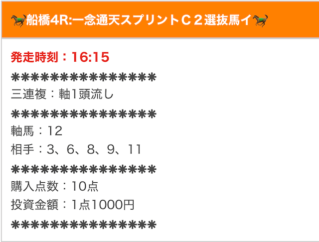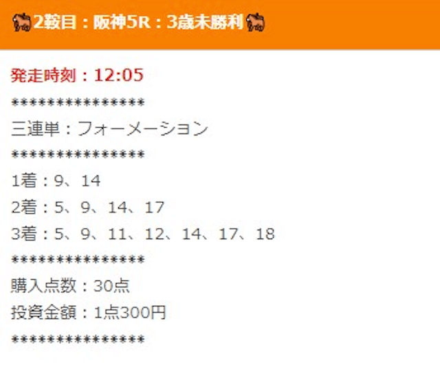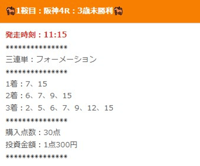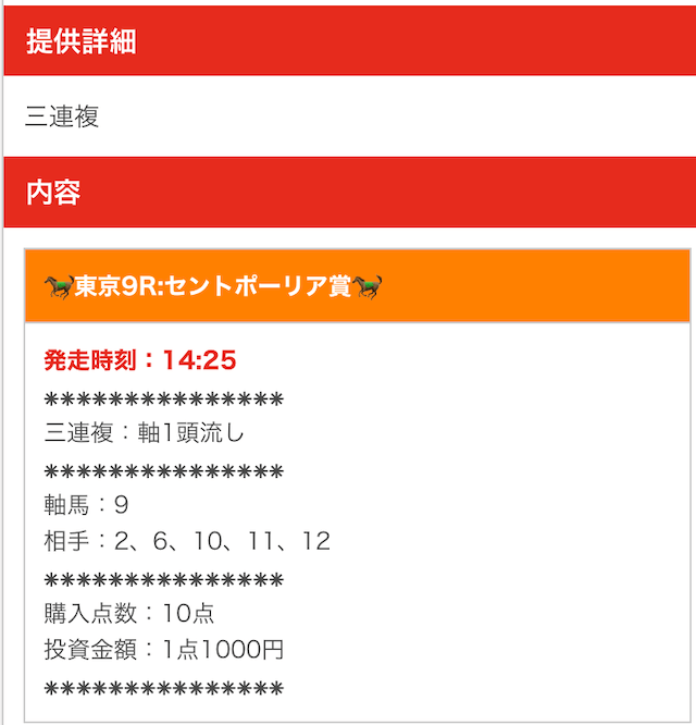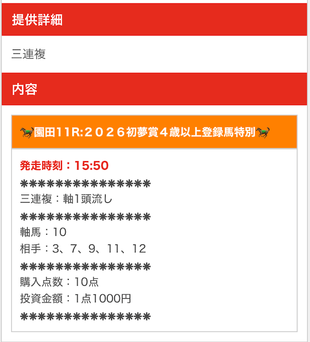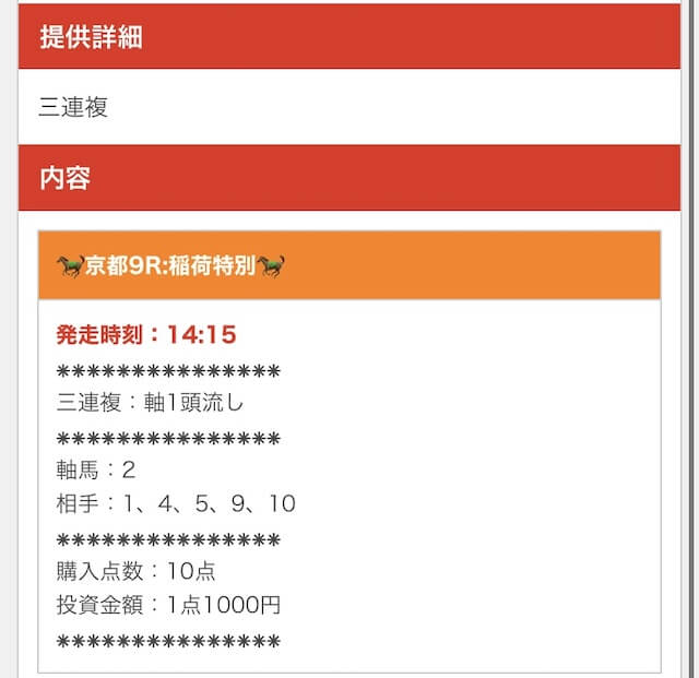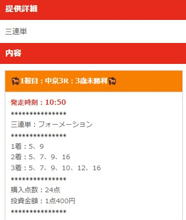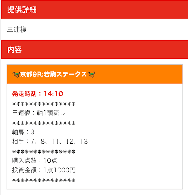 無料予想とは違い情報料金も支払っていたので…的中して良かった。