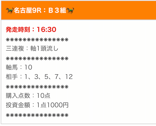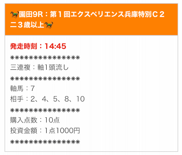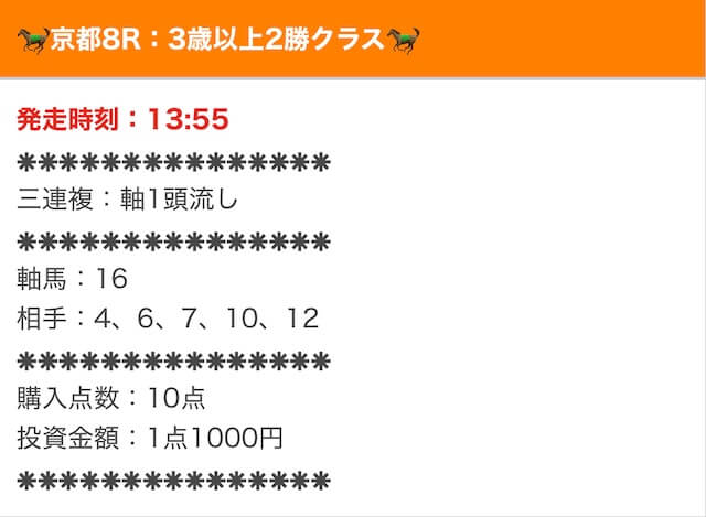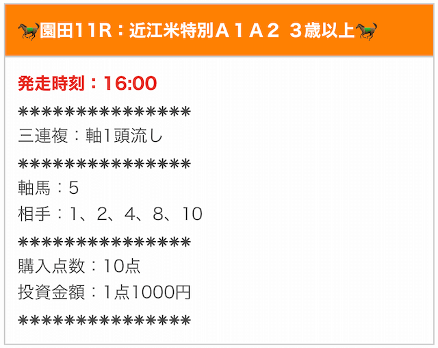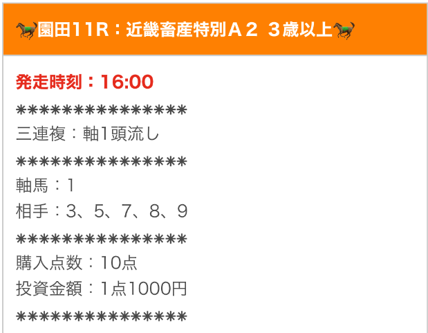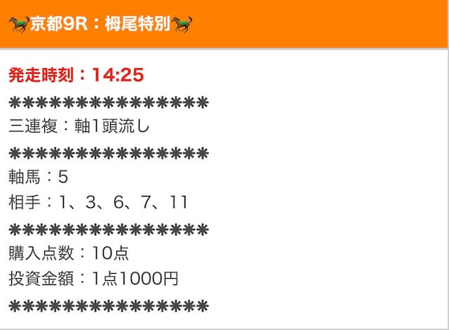 実際に公開された買い目はこちら。