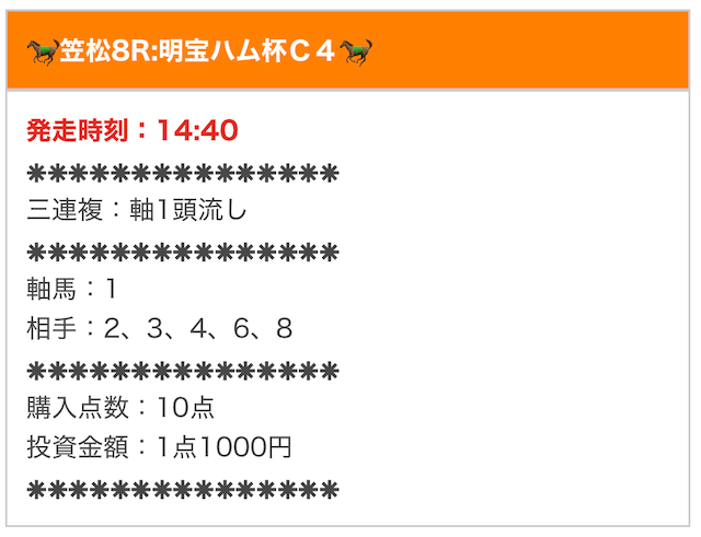 そのため、口コミだけを鵜呑みにせずに、競馬戦線では実際にケイバ一番星の公開する予想に参加して検証を行います。