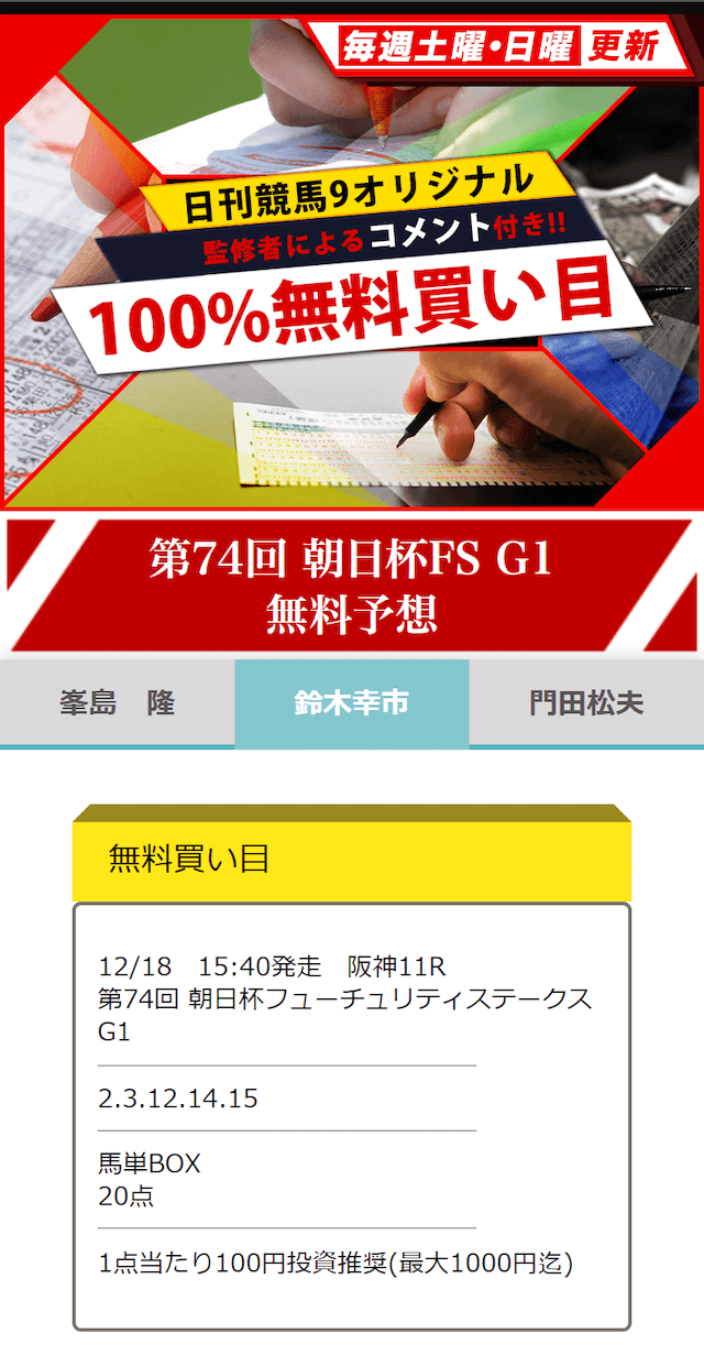 厳選された予想の「最前線」をぜひこの機会にお試し下さい。