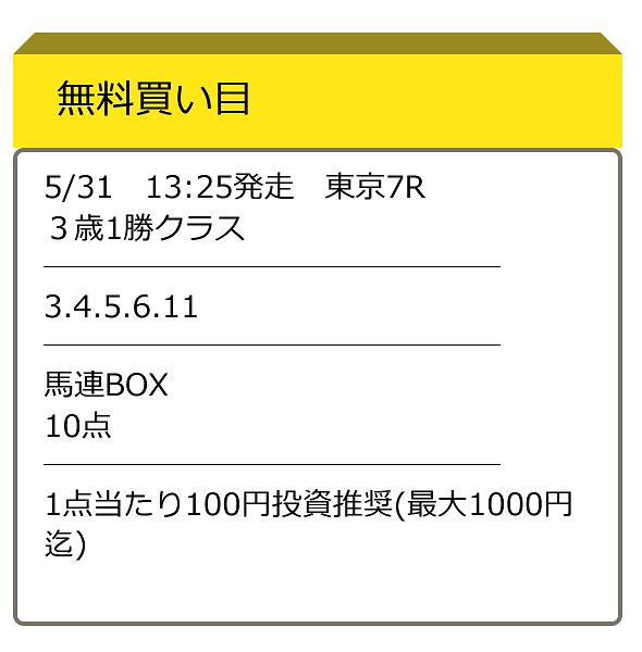 思うところはありますが、1点1,000円の合計10,000円で勝負。