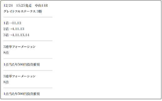 公開されるのは馬単や3連複といった、当てる難易度が高い予想。
