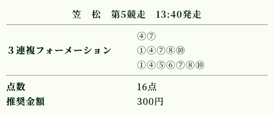 異なる券種で勝負したい方にとっては、少し窮屈に感じてしまうかもしれません。
