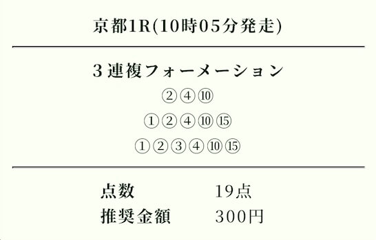無料予想初戦は、2024年11月3日の京都3R。