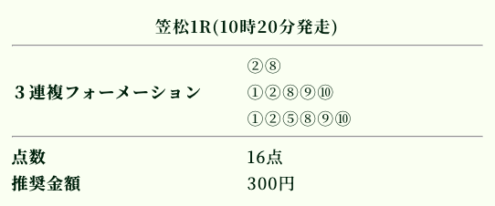 券種は3連複フォーメーションで28点。