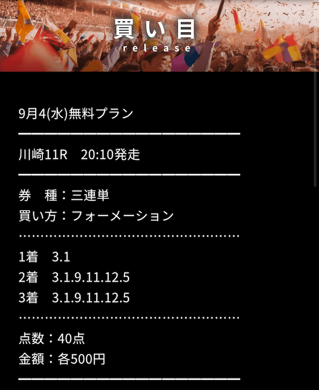 無料予想で十分に稼ぎ余裕ができたタイミングでぜひ有料情報に参加してみて下さい。