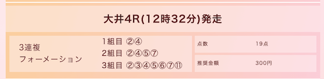 実際に公開された買い目はこちらです。