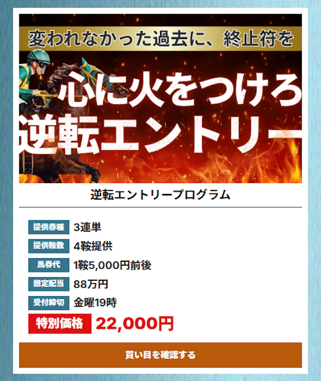 「当たらない競馬はもう終わりにしよう」といった文章から、稼げる予想を提供してくれそうですが・・・
