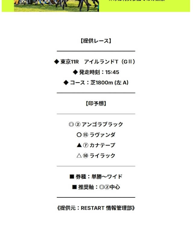リスタートという競馬予想サイトの口コミ・評判・無料予想を徹底検証!実際に使ってわかったメリット・デメリットも大公開
