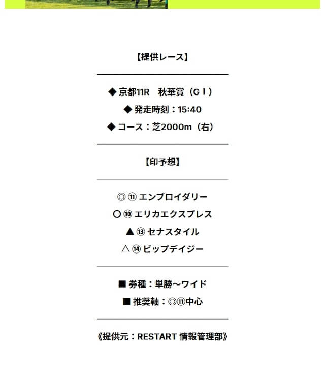 ちなみに、今週はG1「菊花賞」を対象に無料で予想を公開予定。