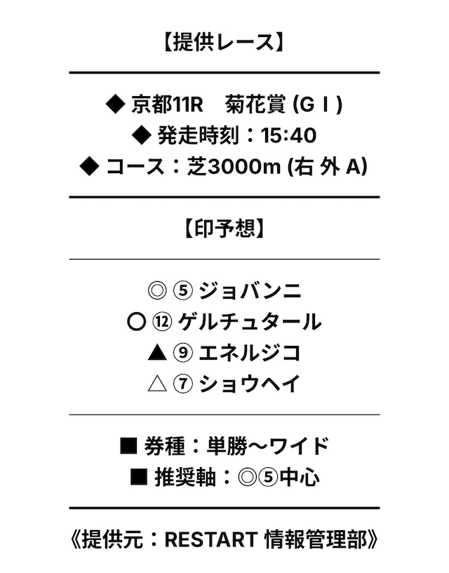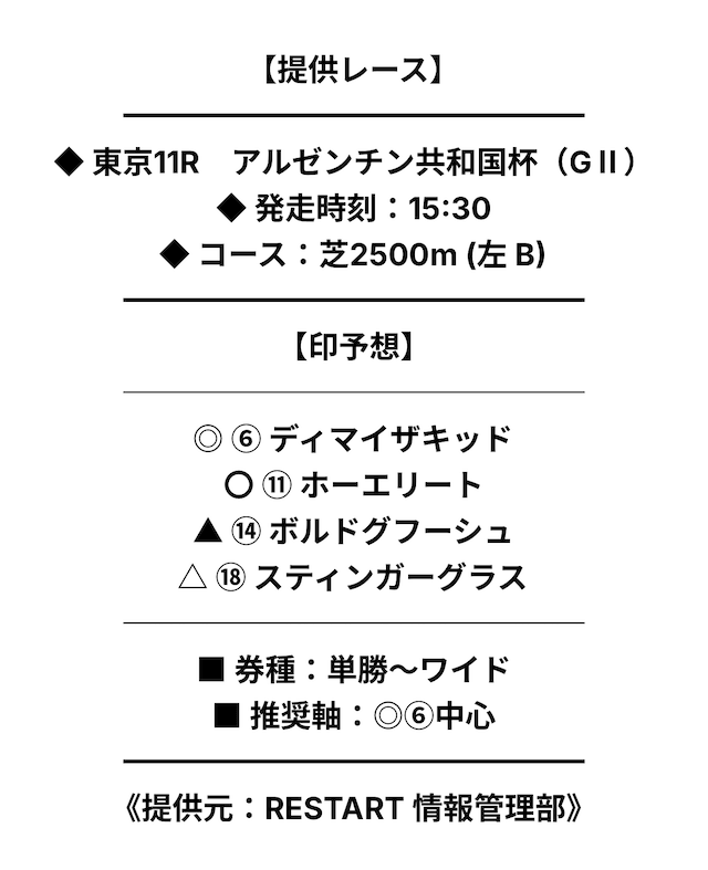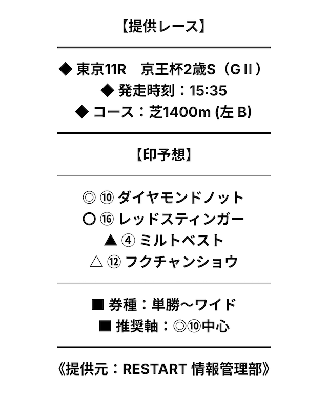 券種・投資金額の指定はなく、予想印のみの公開。