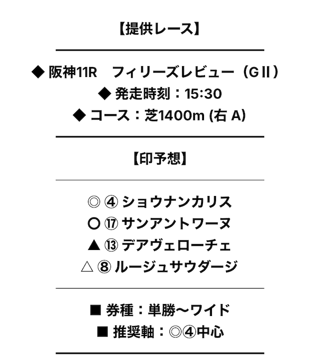 | 2025/12/14 阪神11R | ワイド | 23,200円 | |