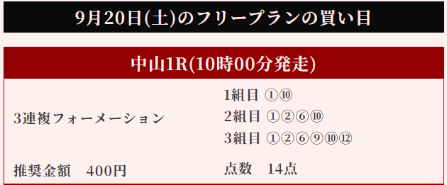 競馬戦線は軍資金に余裕があるので、1点1,000円で購入。