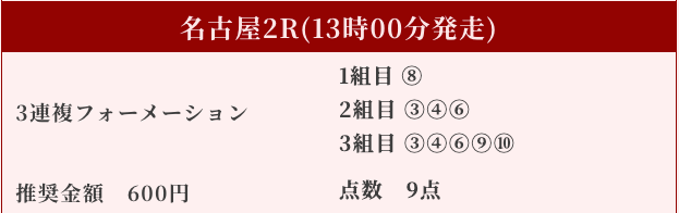 ⑩レストプレドゥモア | 4番人気 | 6.7倍 |