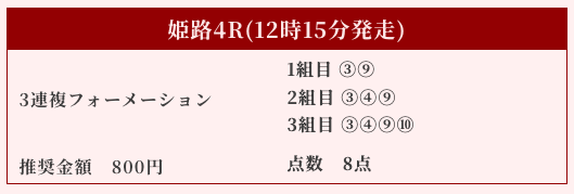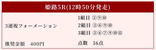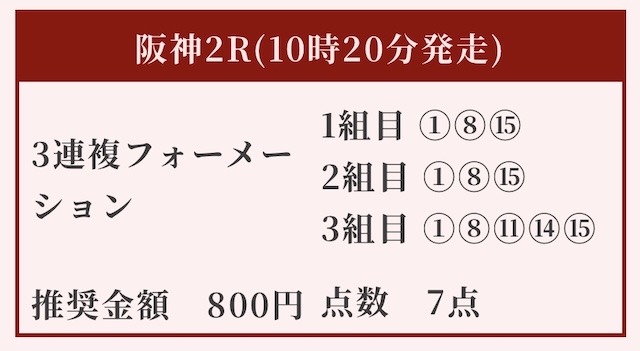 | ⑩レストプレドゥモア | 4番人気 | 6.7倍 |