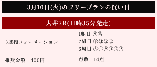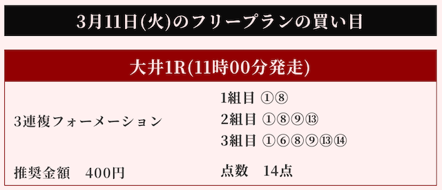 以下は実際に公開された買い目になります。