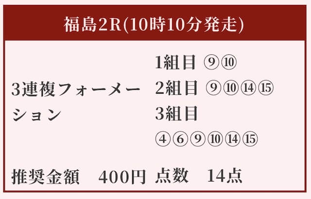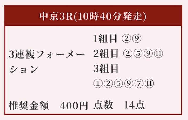 買い目は三連複フォーメーションで14点。