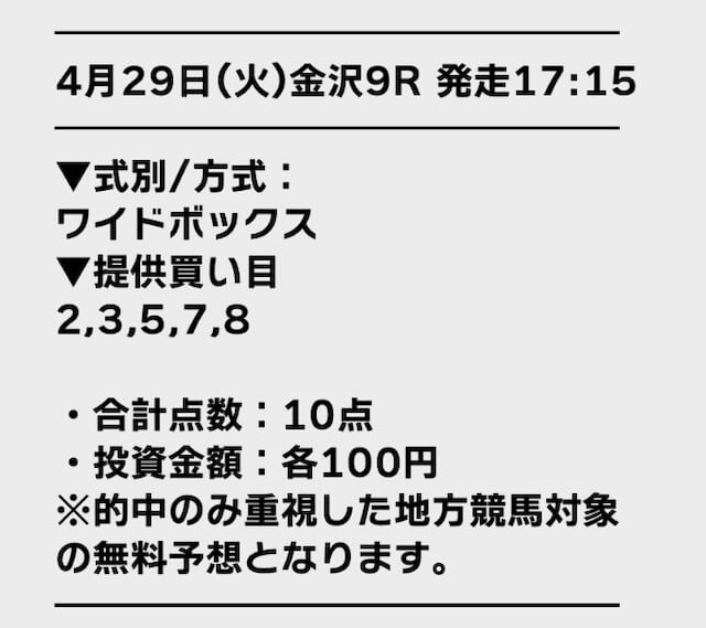 有料プランの的中率が他サイトに比べて高いと聞いて参加しましたが、本当にその通りでした。このコスパはかなりおすすめです。