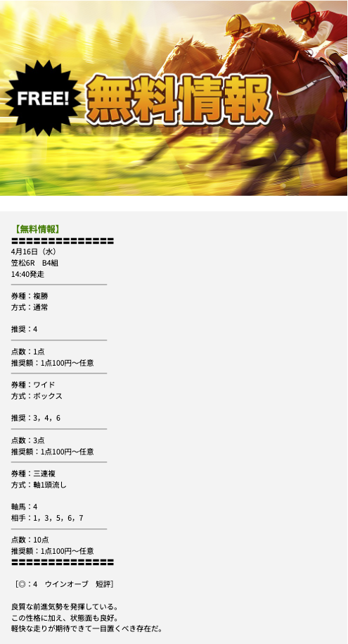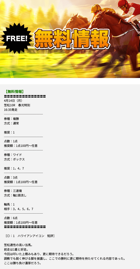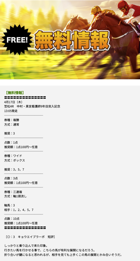 競馬トライアンフの無料情報に参加(3回目)