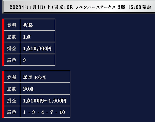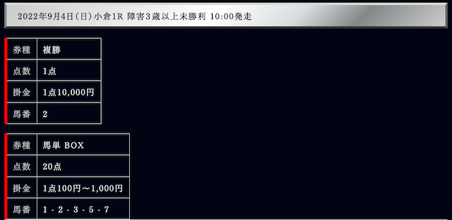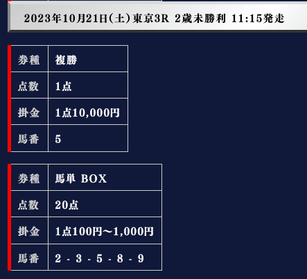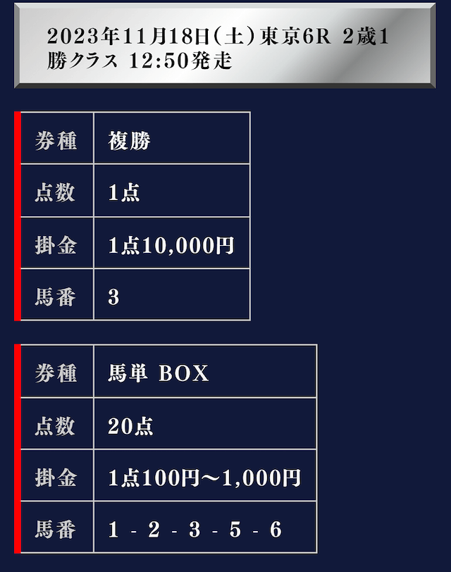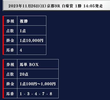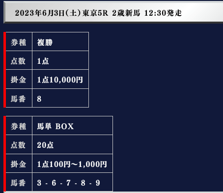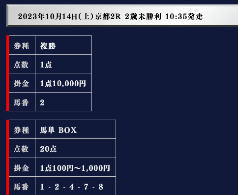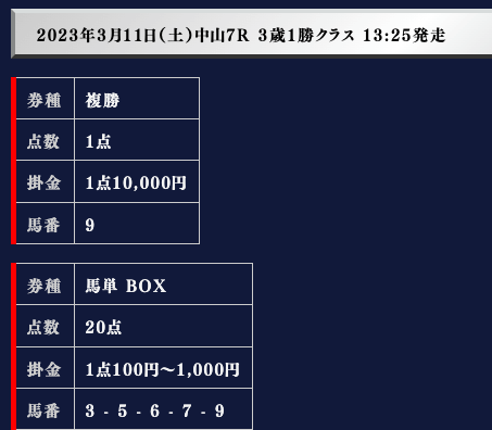 では、実際の買い目を御覧ください。