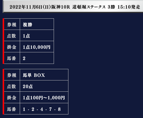 実際の買い目がこちらです。