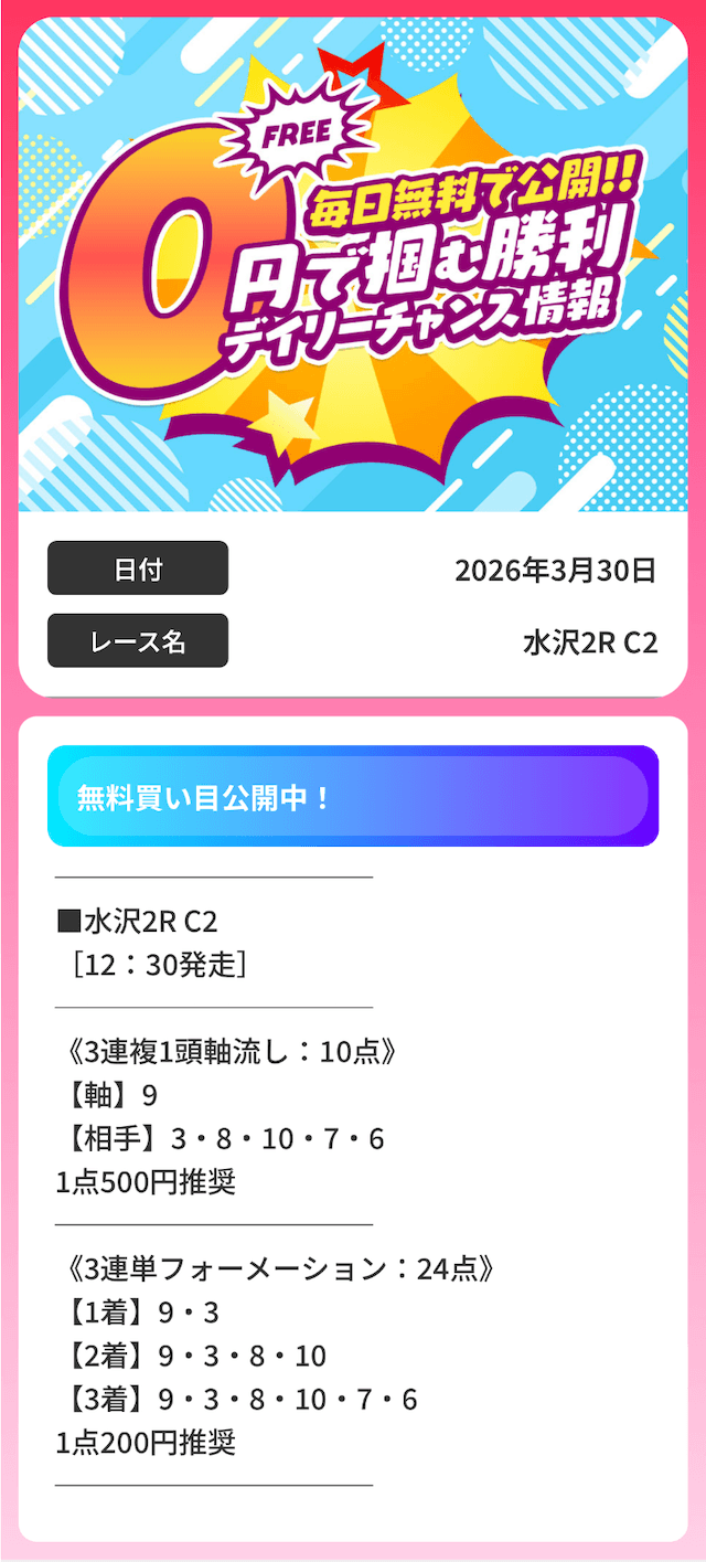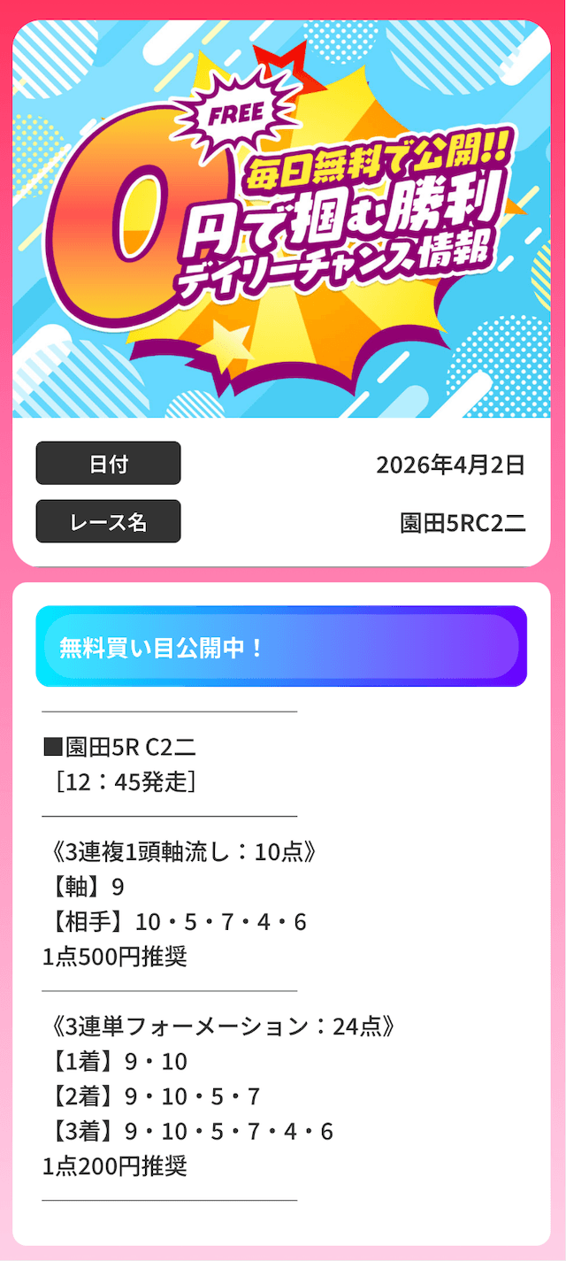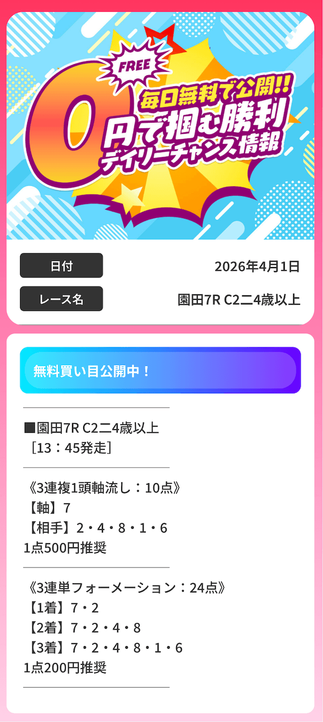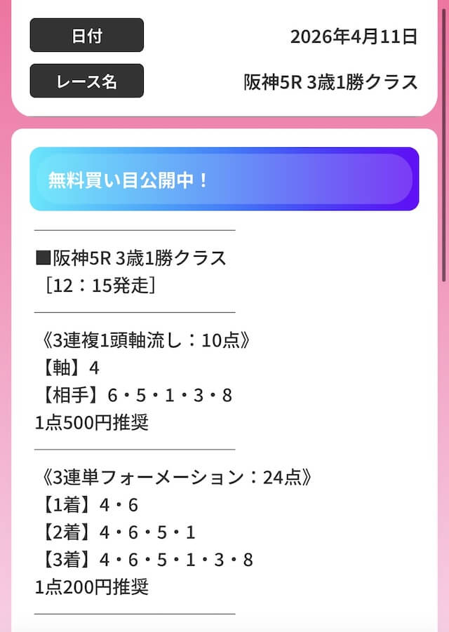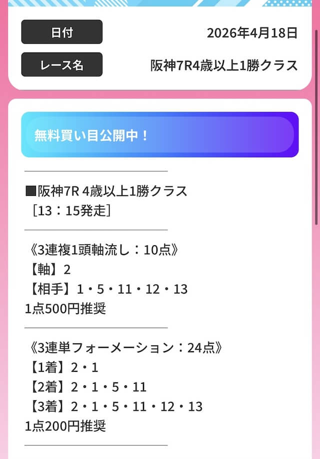 無料予想で万馬券決着を読み当てるとなれば、実力は間違いないでしょう。