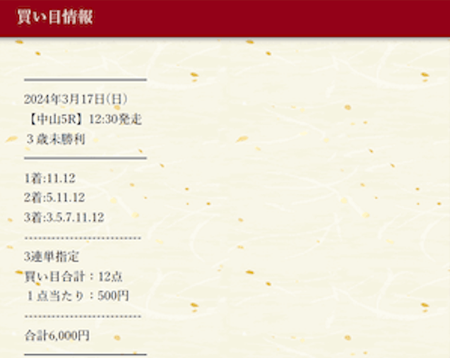 投資金額は1点500と記載されていますが、競馬戦線の軍資金には余裕があるので、1点1,000円に統一して勝負していきます。