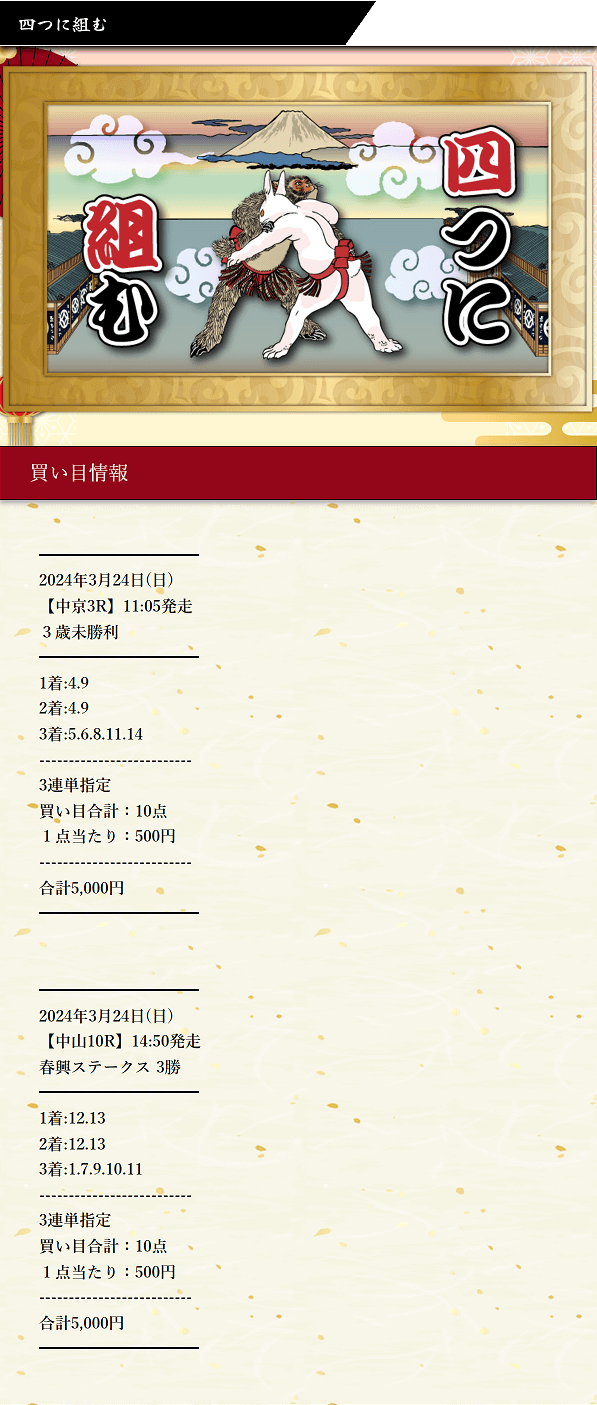 基本的に人気馬と穴馬を上手く組みわせて当ててるんだけど、たまに穴馬で固めてるときがある。