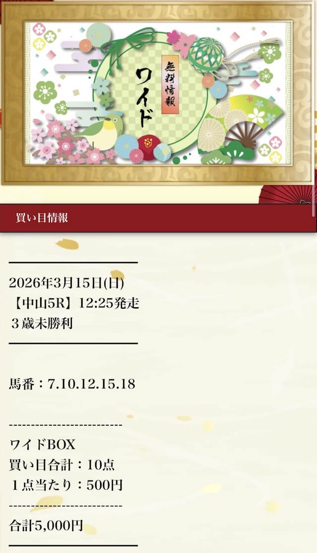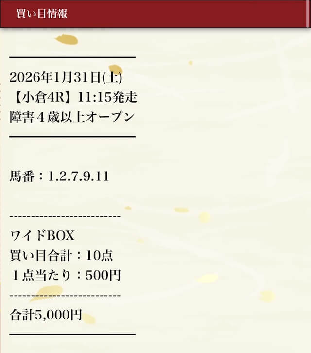 実際に公開された買い目はこちら。