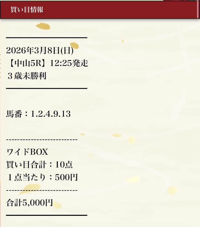 安定感も持たせたい方はワイドの予想にも定期的に参加するべきだと思うよ。