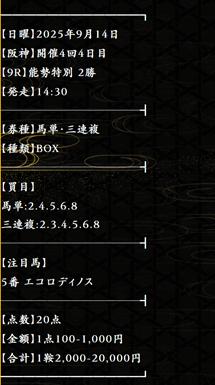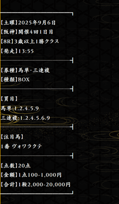 実際に公開された買い目はこちら。