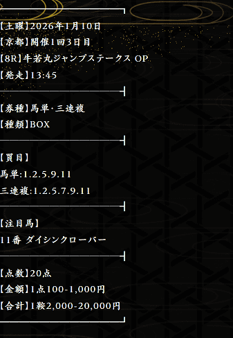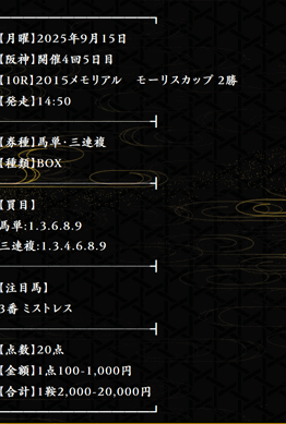 そんな中、騏驎は責任と覚悟を持って予想を公開しているようですが・・・