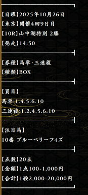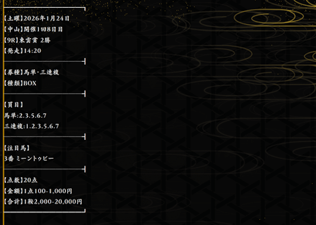 どのような券種の予想を公開しているかはわかりませんが、一攫千金を狙うようなサイトではなさそうです。