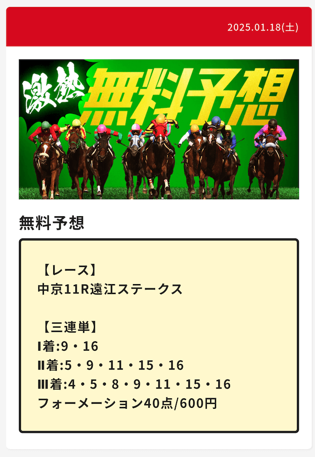- 無料予想で万馬券を獲得