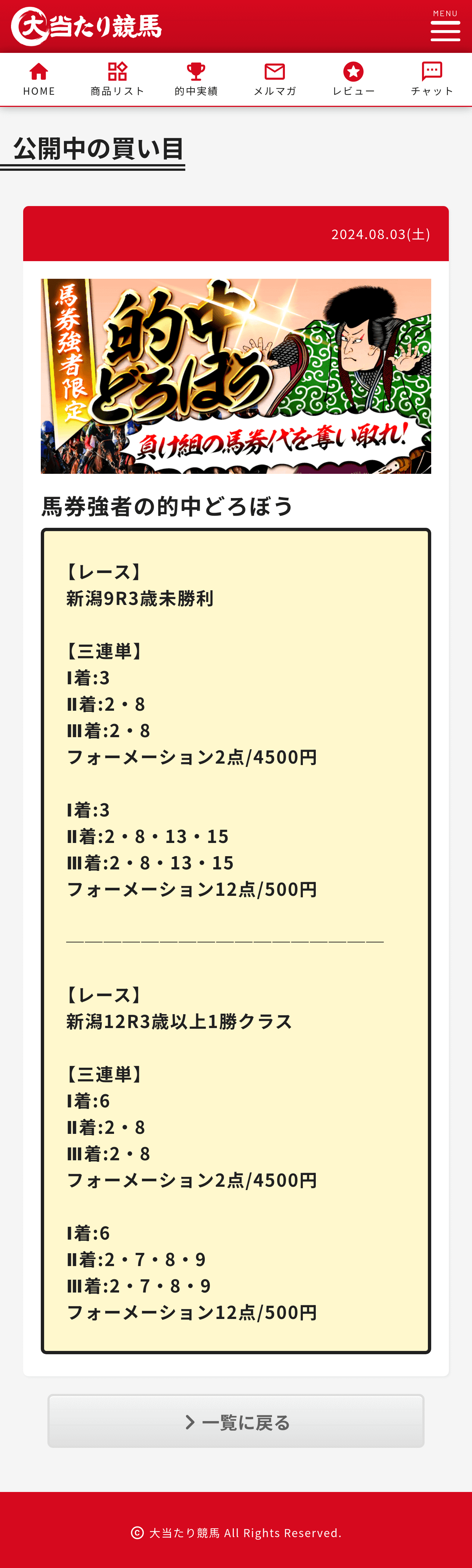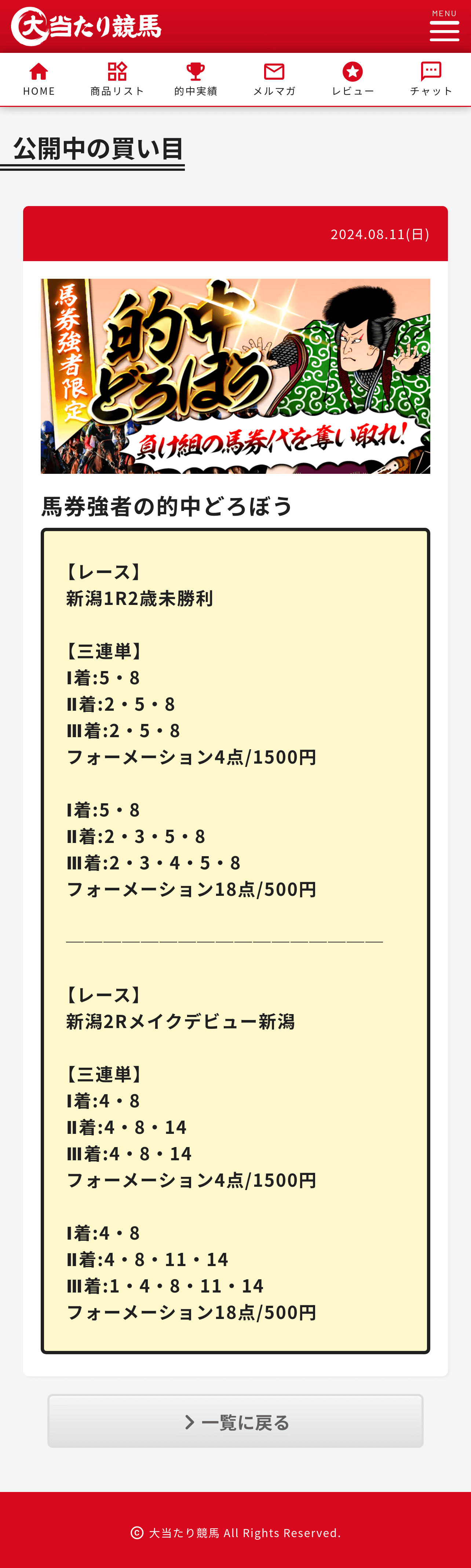 大当たり競馬のユーザーになると、万馬券が期待できる予想を受け取ることができます。