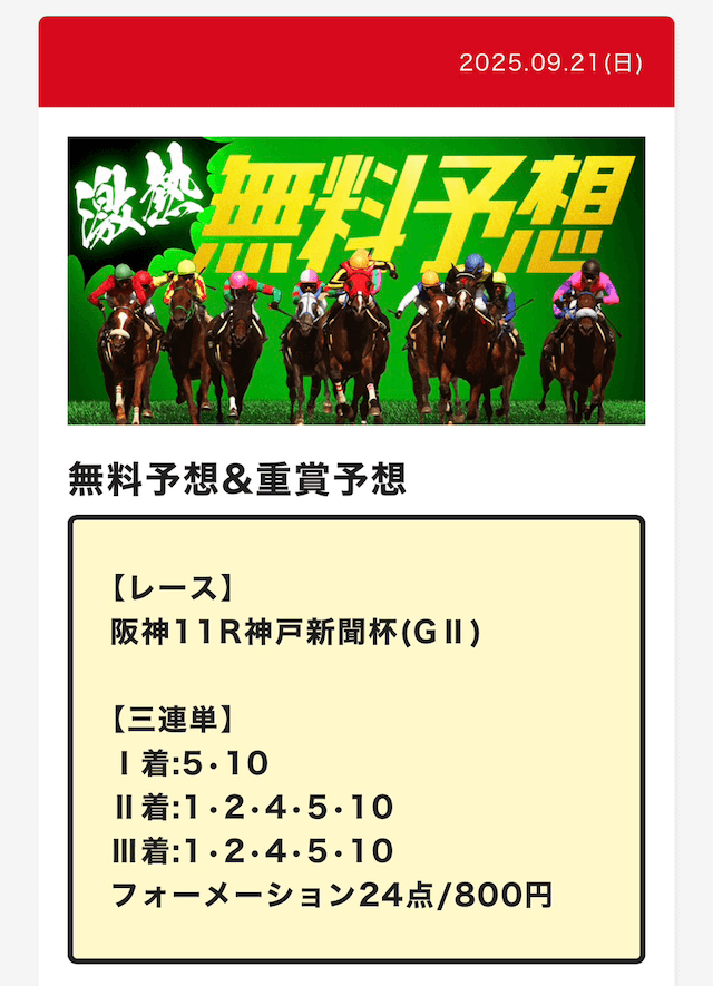 - 毎日予想が受け取れる(稼ぐチャンスが多い)