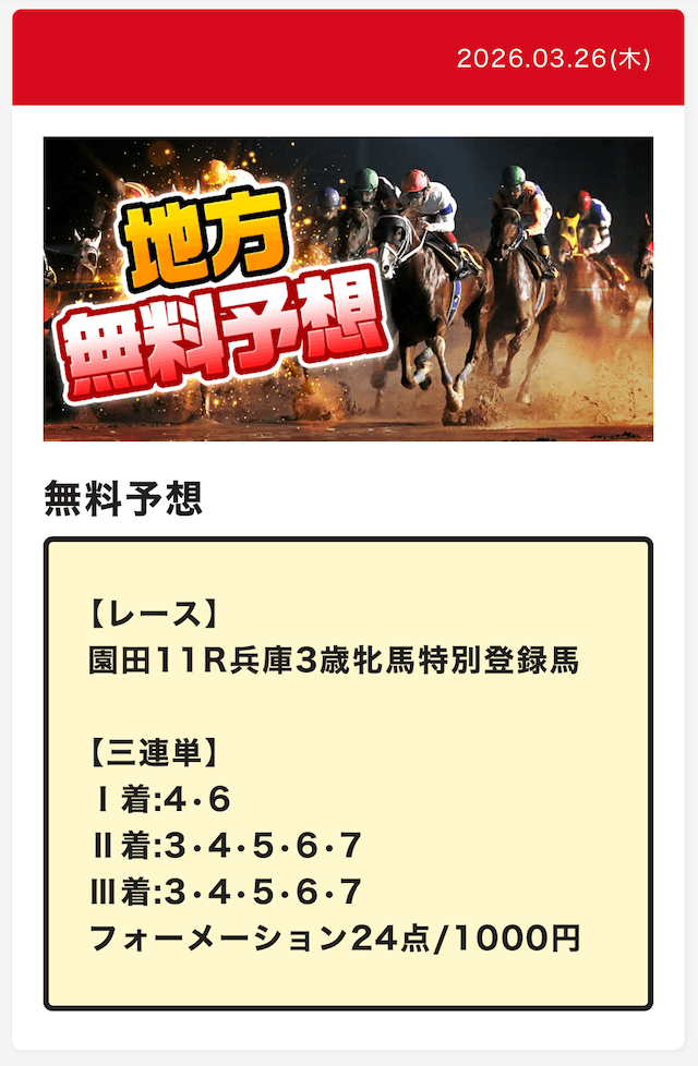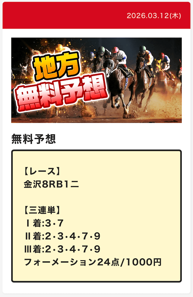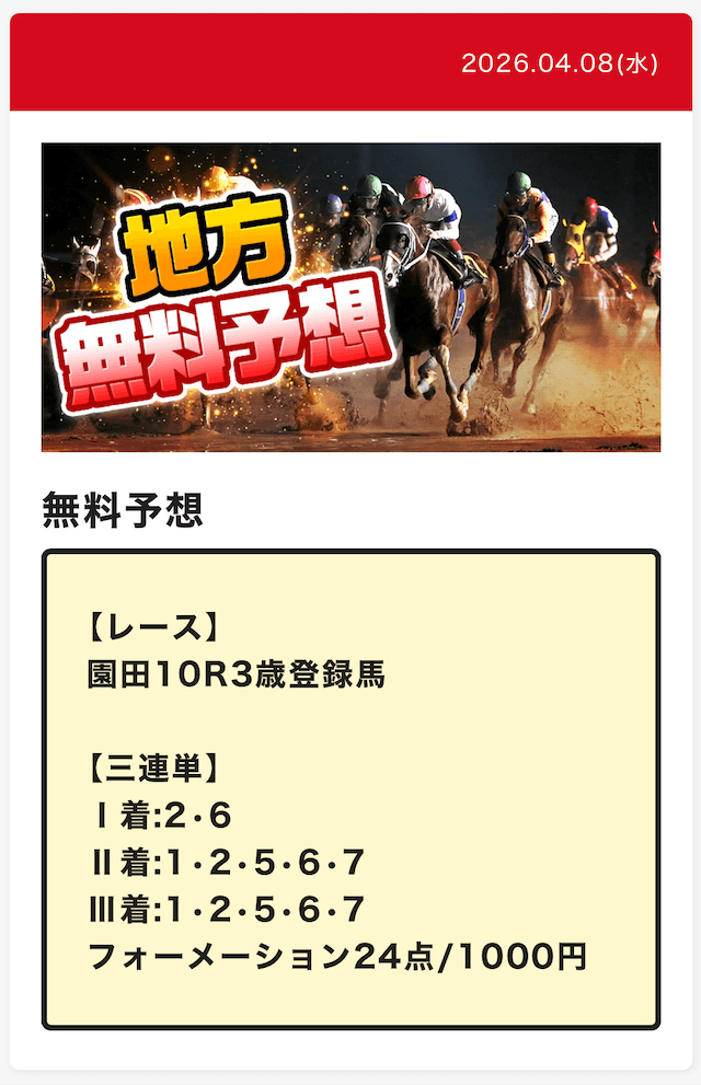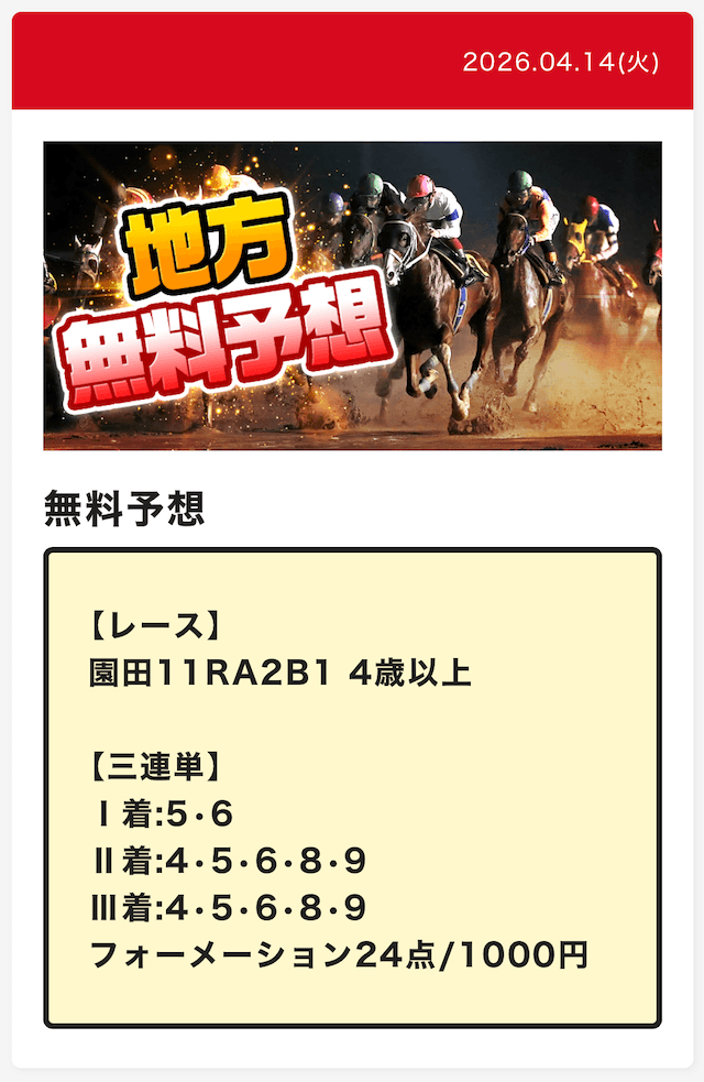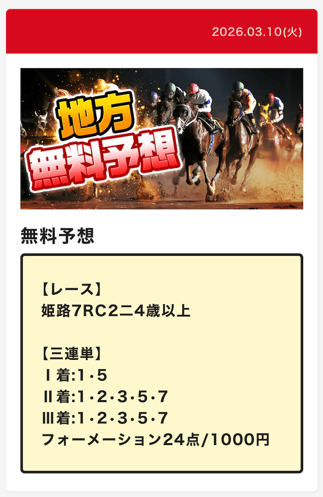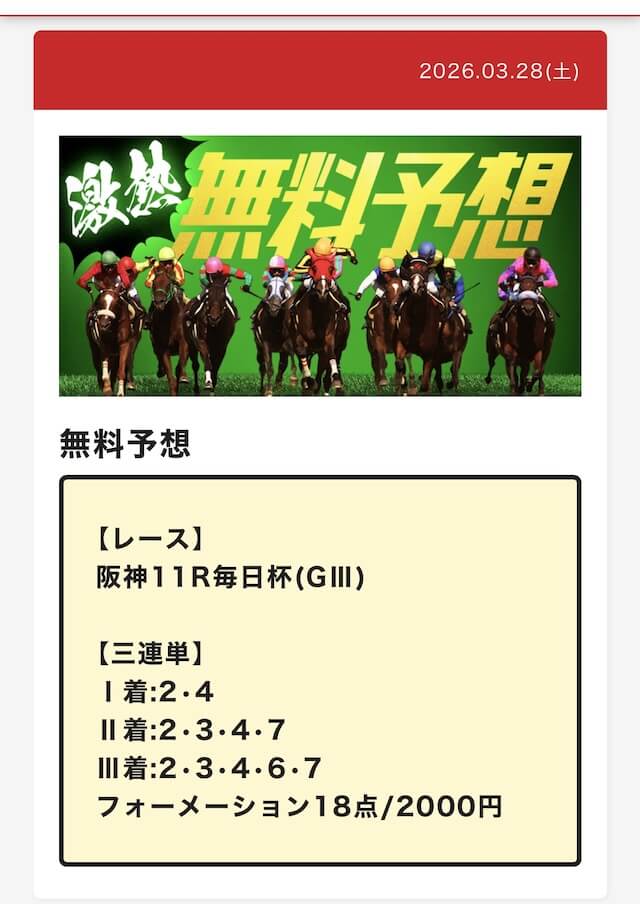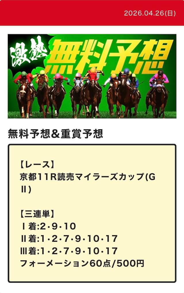 無料予想で感触を掴ませ、有料予想で本領を発揮する二段構え。