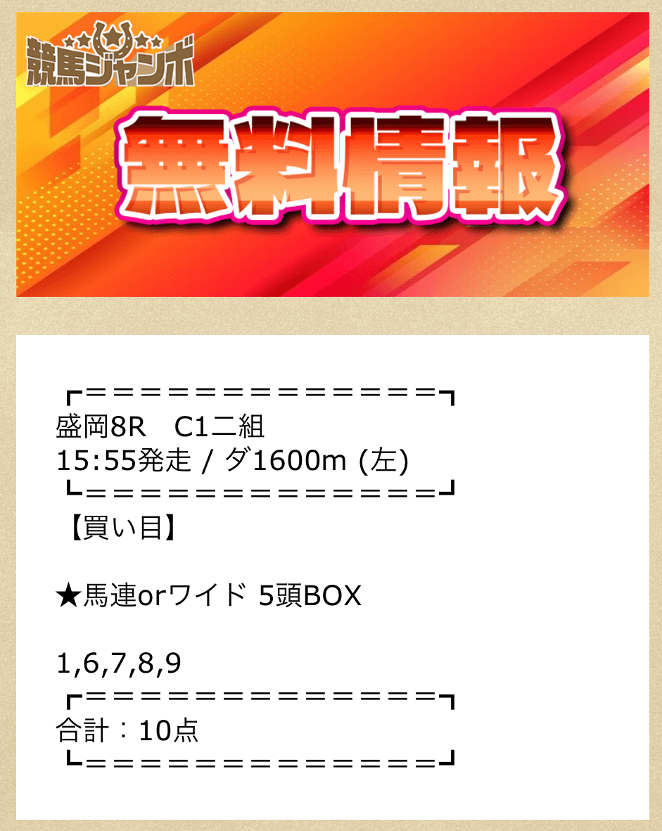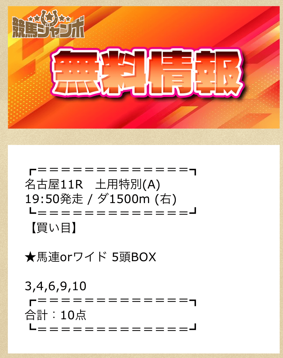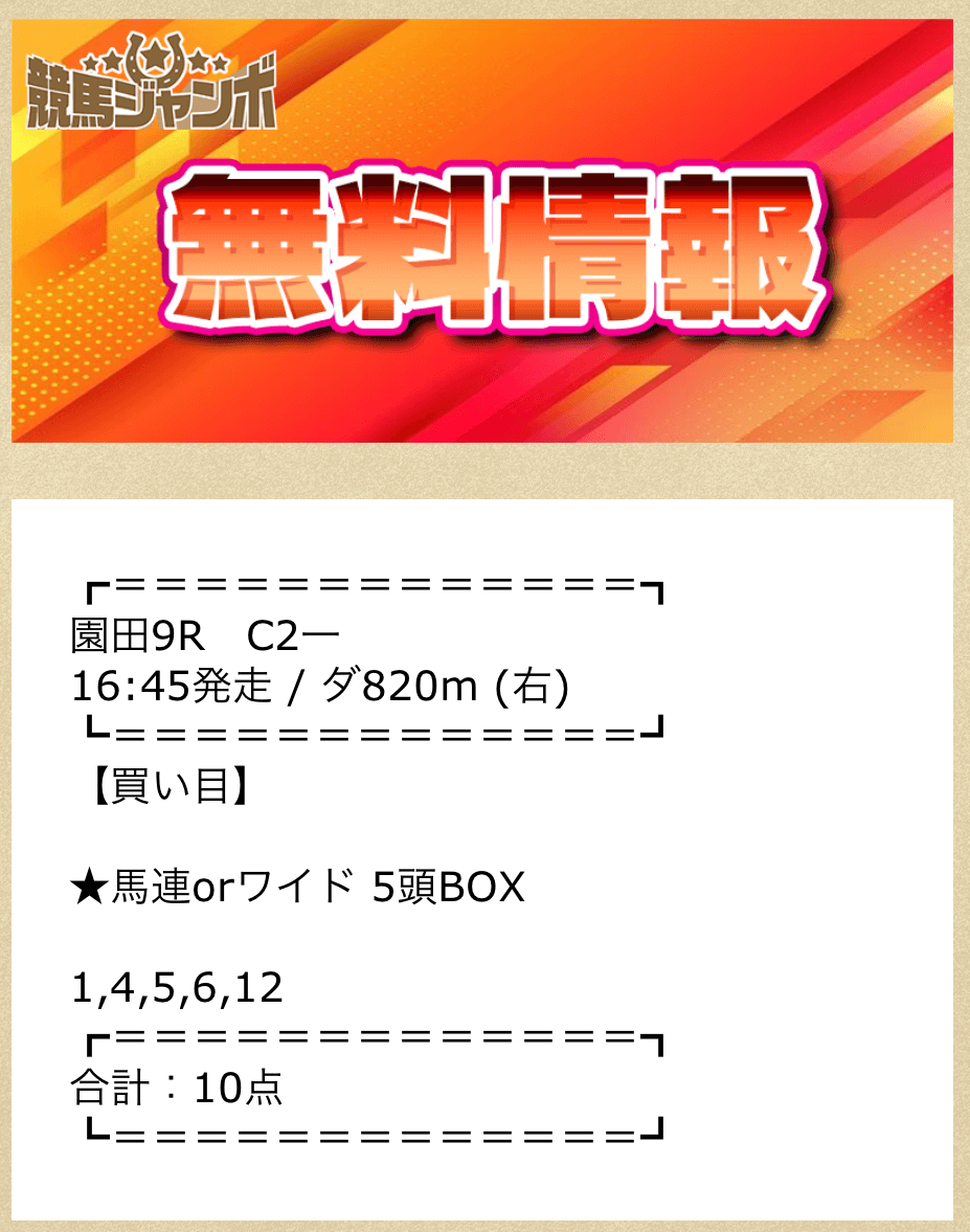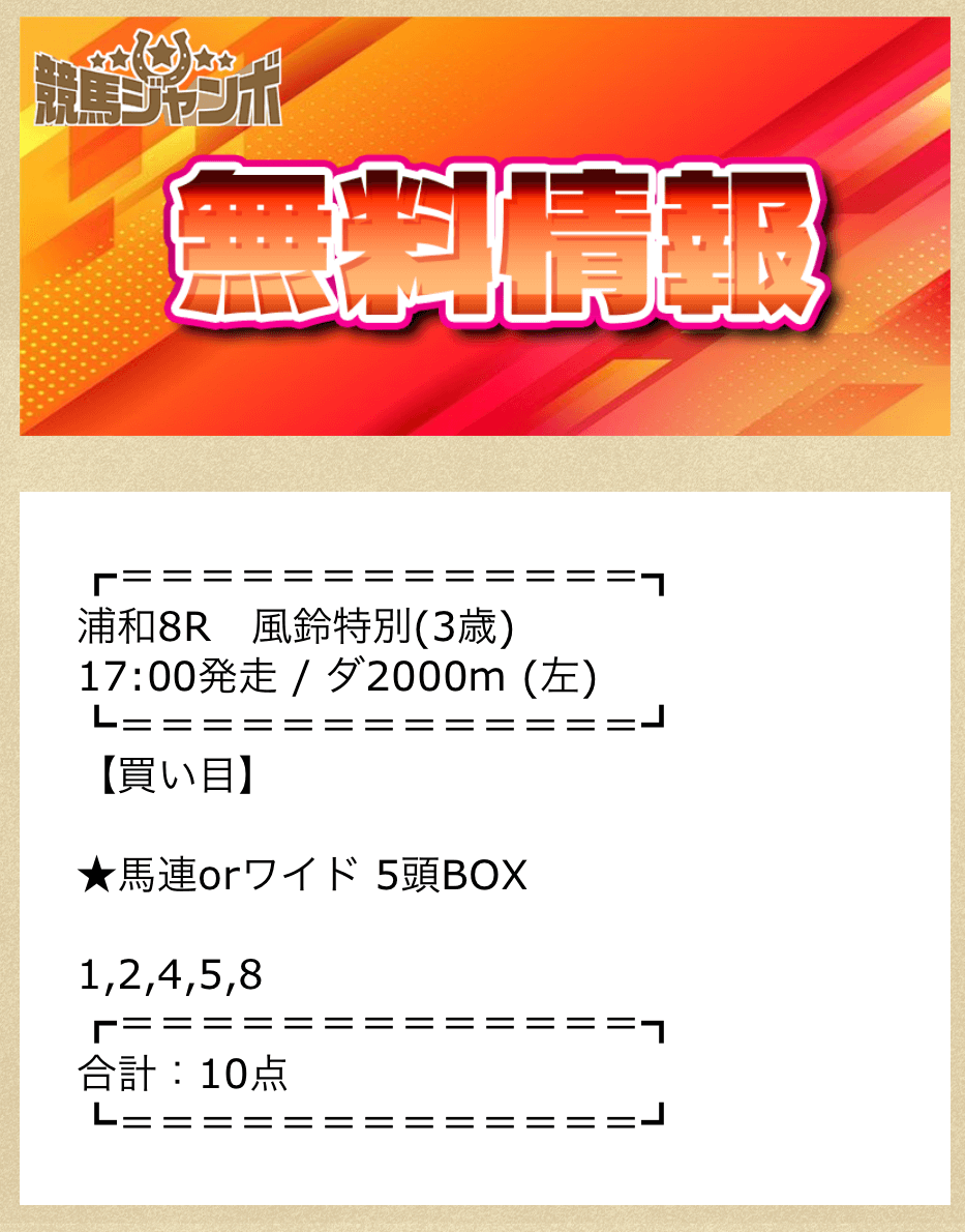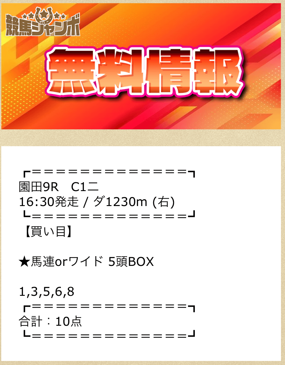 競馬ジャンボの無料予想詳細