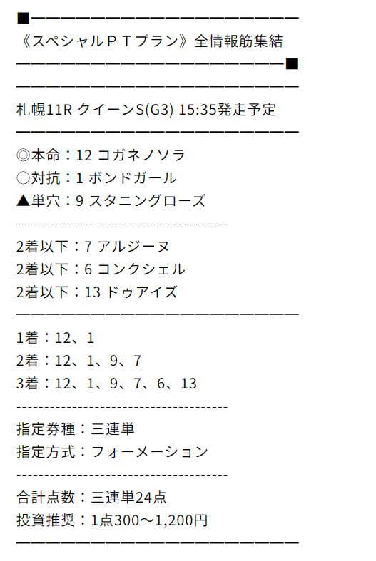 スペシャルPTプランてのを使ったんですが、おととい中山12レース、めっちゃ高額獲りました。