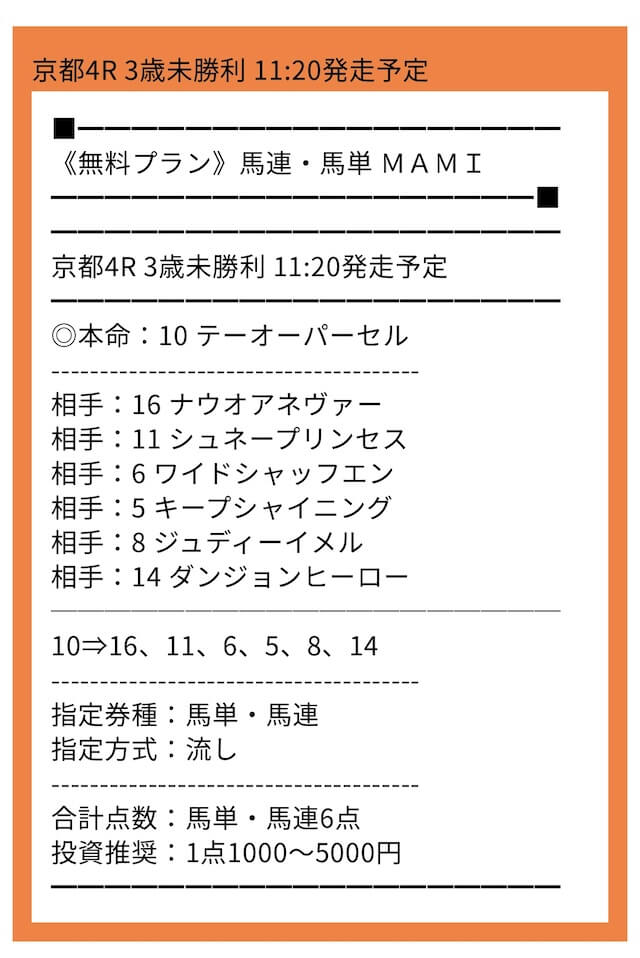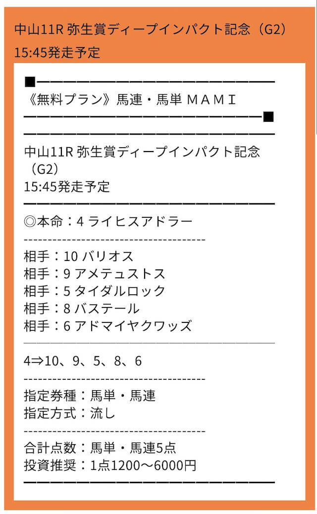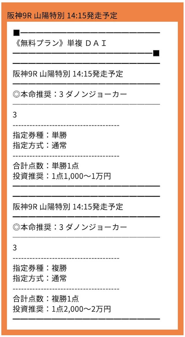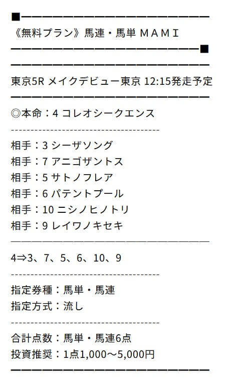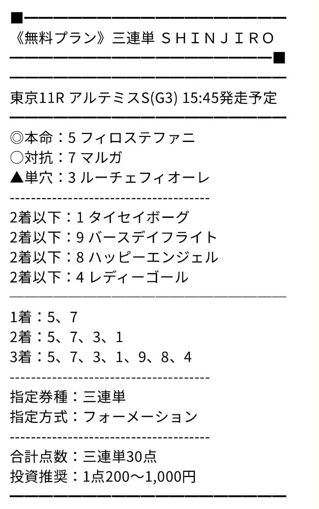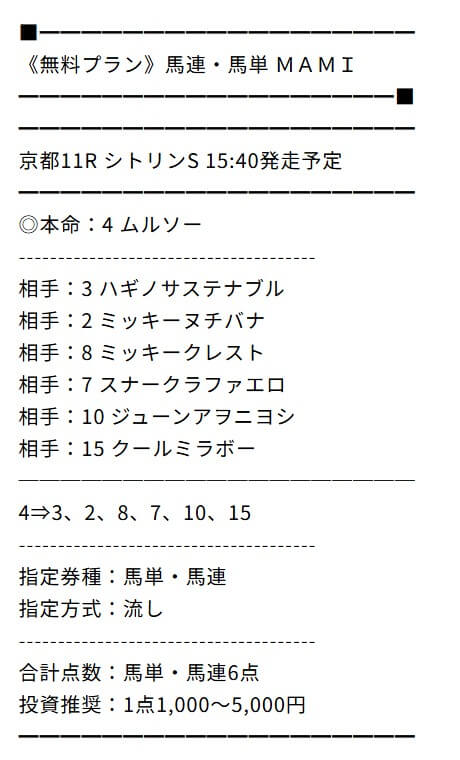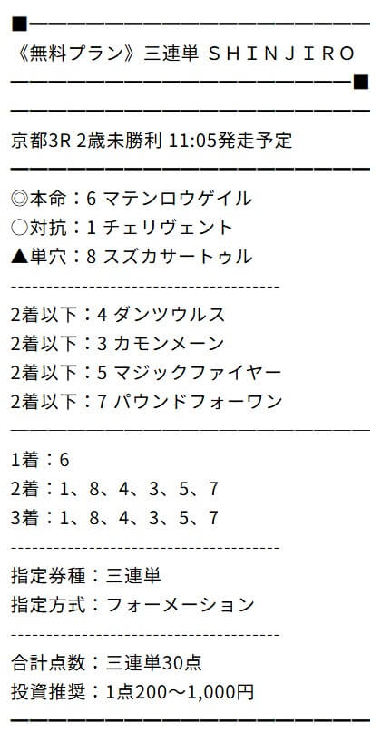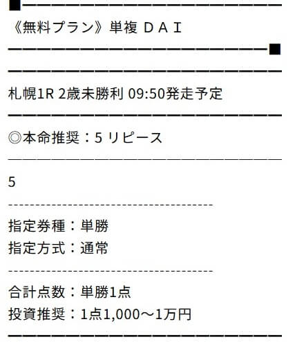 本日までに週末のキャンペーンプラン申し込みすれば予想無料で見れるとの事だったんだけど的中嬉しい。