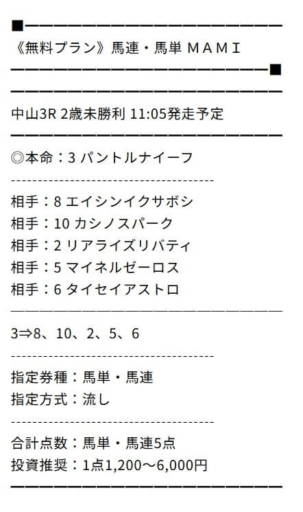 自分は無料はマミさん、ポイントプランは三連単よく的中している剛三さん推し。