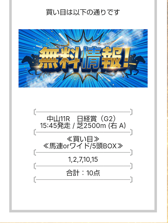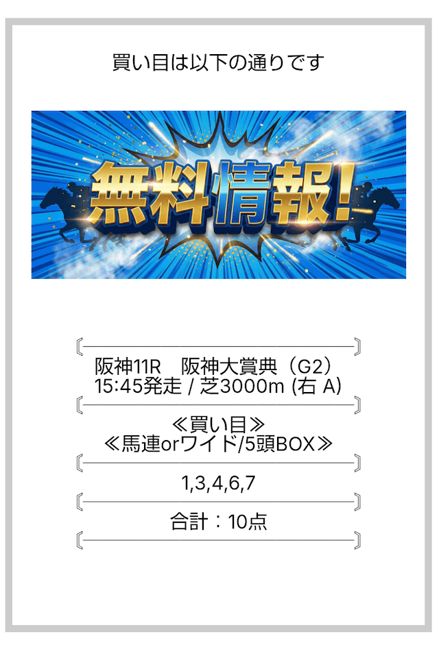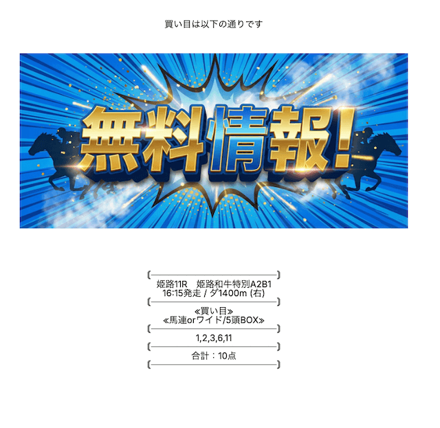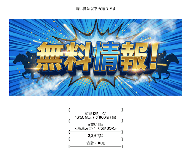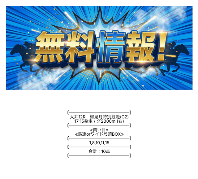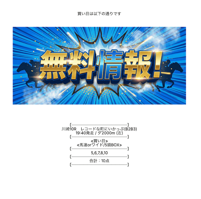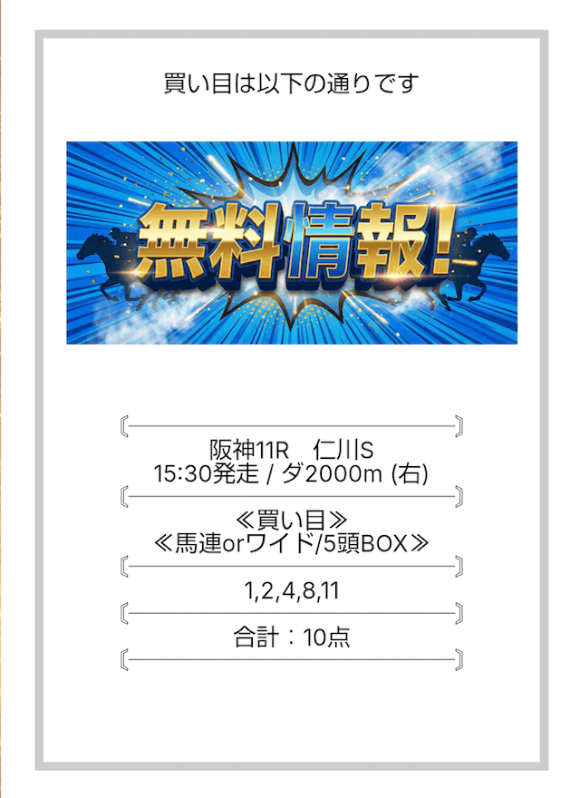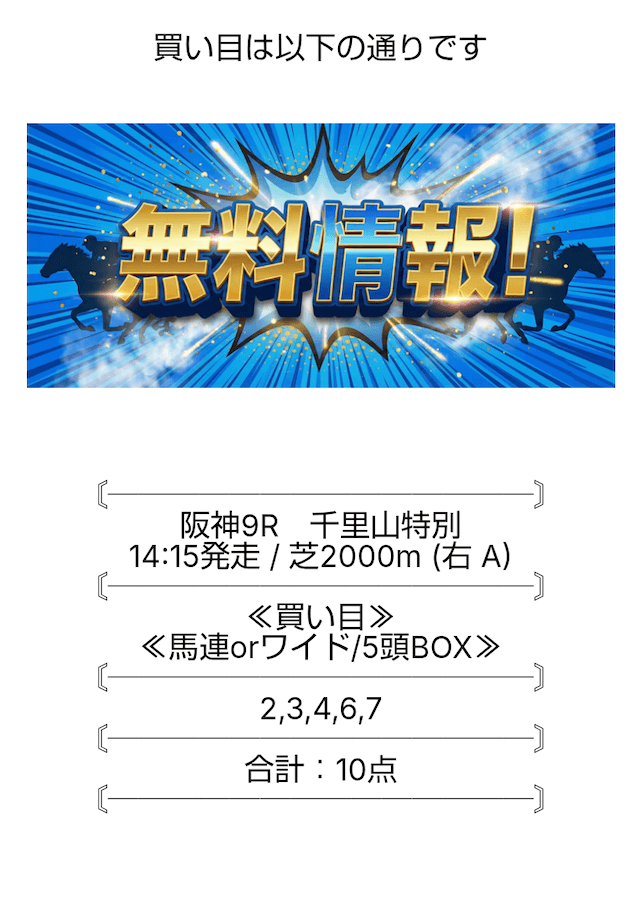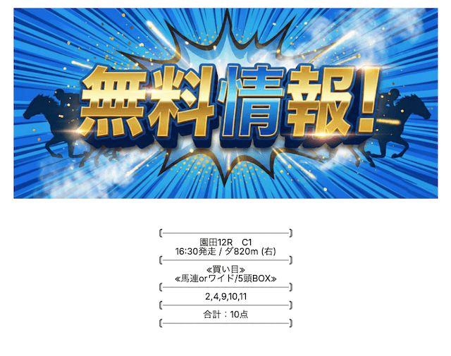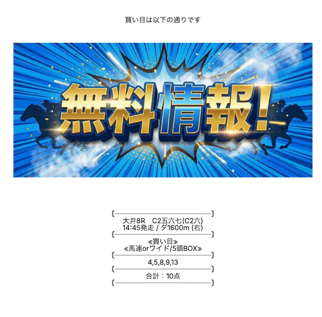 ここの無料情報は、ワイドでもしっかり利益が出るのが魅力ですね。人気順に流すだけじゃなく、妙味のある中穴馬を絶妙に組み込んでいるので、ワイドとは思えない配当がつくことが多々あります。