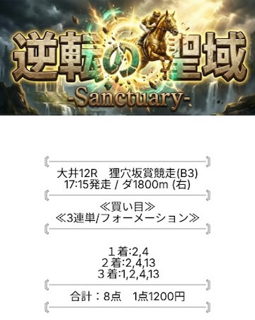 逆転の聖域で完璧な的中。